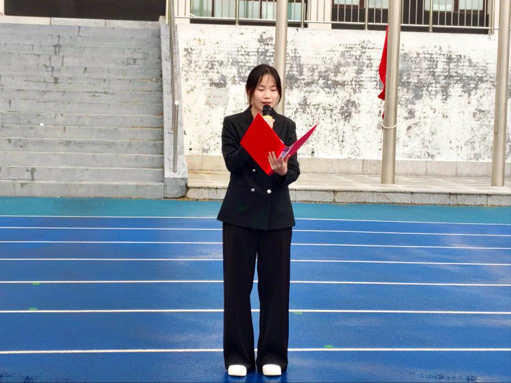 最后,团员代表进行发言。2023级学生代表黄雨欣同学进行国旗下的发言,黄雨欣同学结合学习感悟,号召同学们以书为舟、以勤为桨,将求知热情融入日常,在青春赛道上奋勇争先,用学识与拼搏书写时代答卷。