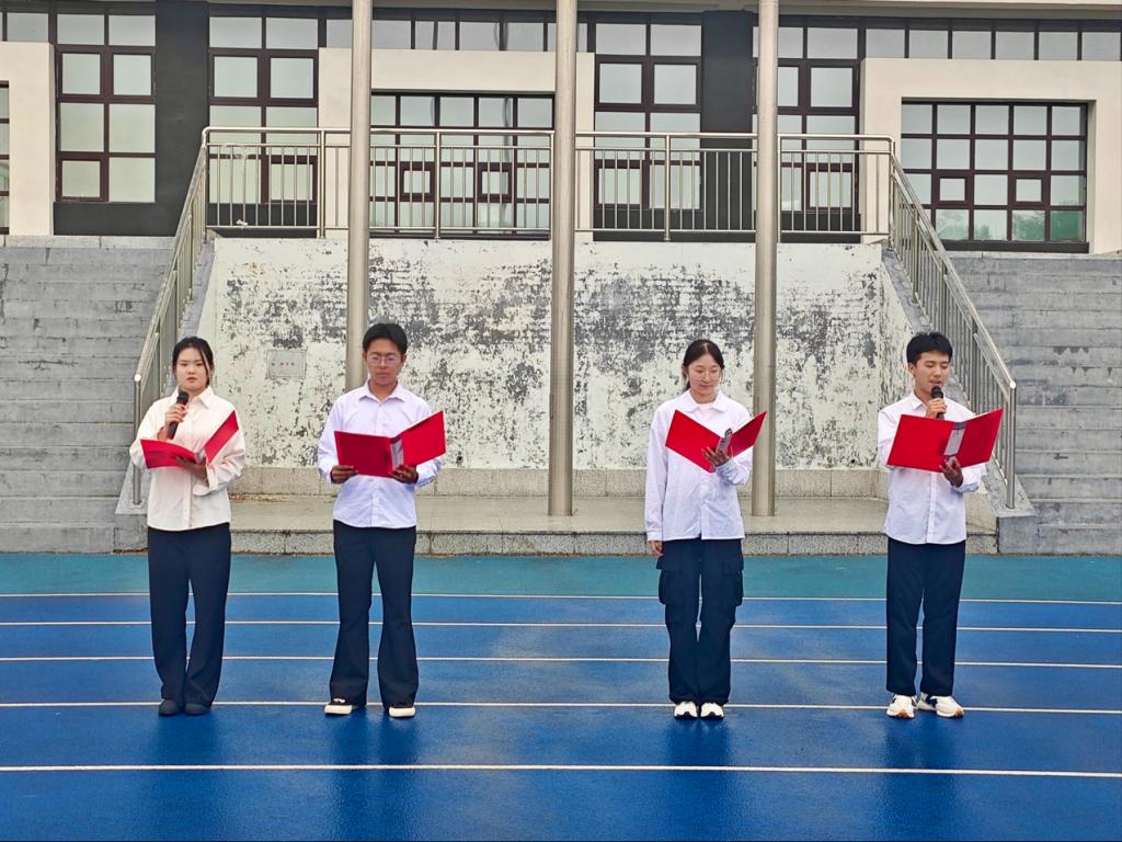 为营造浓厚学习氛围,激励青年学子以奋斗之姿在知识海洋中破浪前行,2025年6月16日上午,由团委主办,数学科学学院承办的“墨守诚信书答卷,严守规范护考安”主题升旗仪式在田径场举行。本次升旗仪式由数学科学学院学生会执行主席孟荟萱主持,数学科学学院辅导员贾修歧老师、全体团总支学生会成员及2024级全体学生参加本次升旗仪式。
