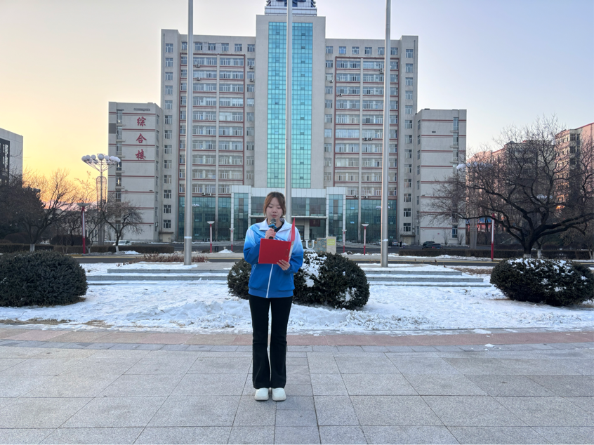 国旗之下,初心如磐。升旗仪式后,2025级学生代表曹蒙同学发表了她回顾了“一二·九”运动中爱国青年为民族危亡挺身而出的壮阔历程,结合新时代青年的使命担当,号召全体经管学子铭记历史、不忘来路,将爱国情、强国志、报国行融入日常学习与实践,以过硬的专业本领和昂扬的精神风貌,回应时代召唤、勇担青春责任。