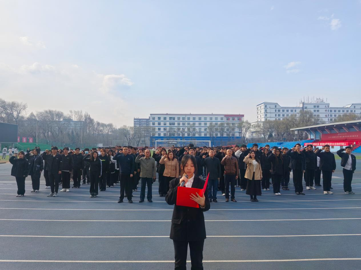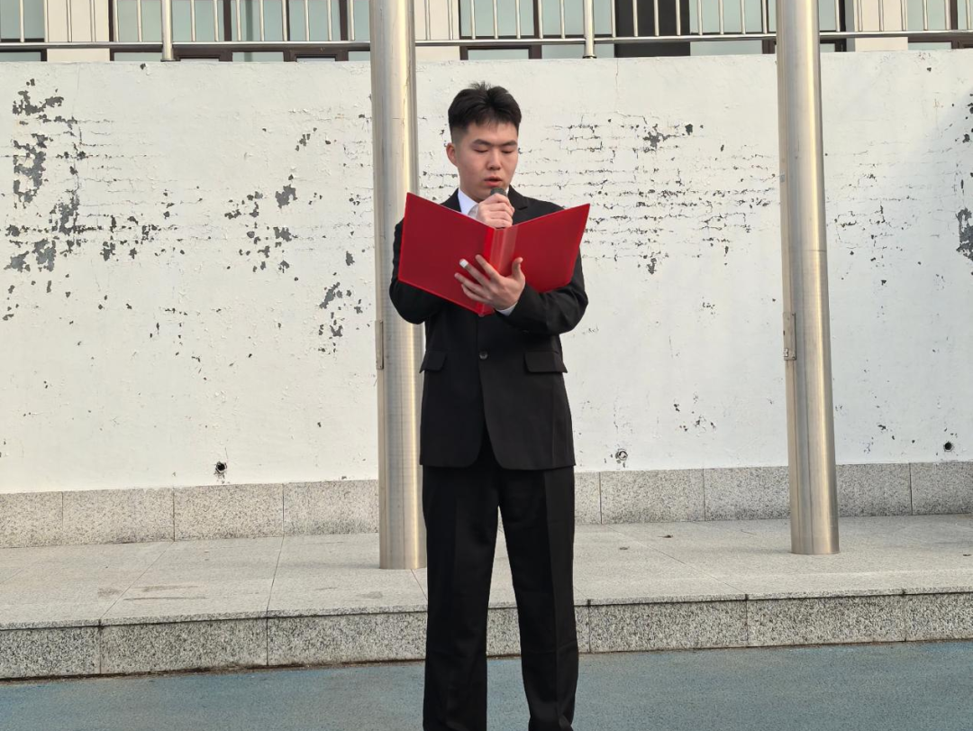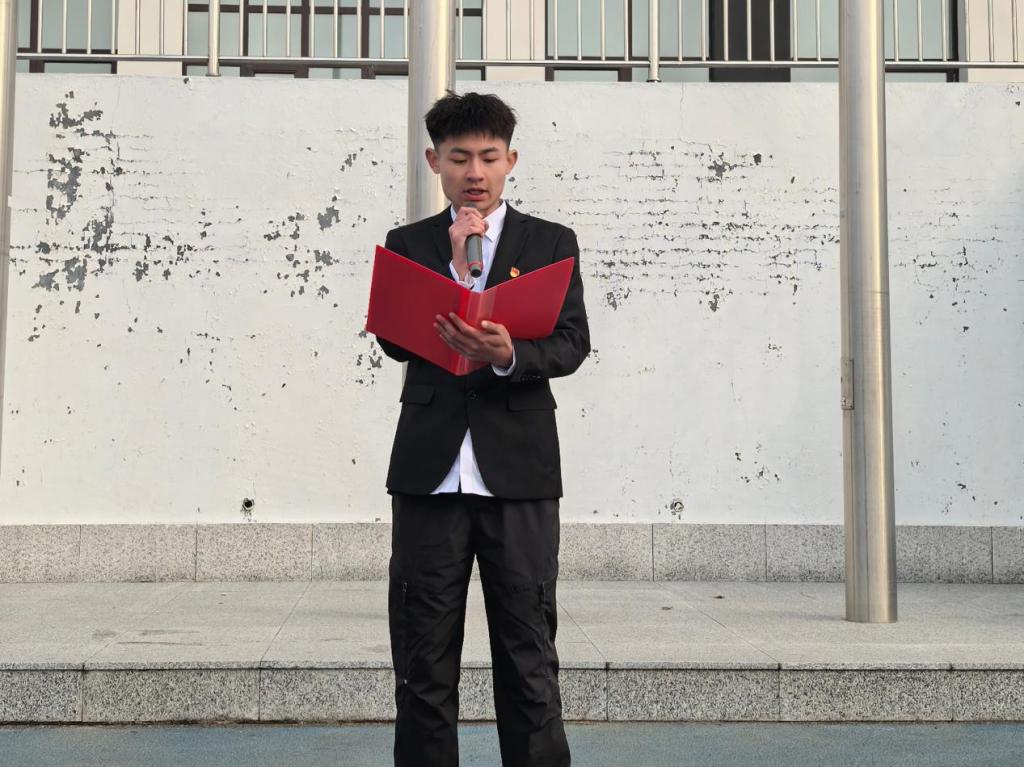 接着,学院团总支副书记刘坤带领全体师生宣誓。大家庄严举起右拳,铿锵有力的誓言声响彻全场,在鲜红旗帜下凝聚成捍卫家国安全的磅礴力量。