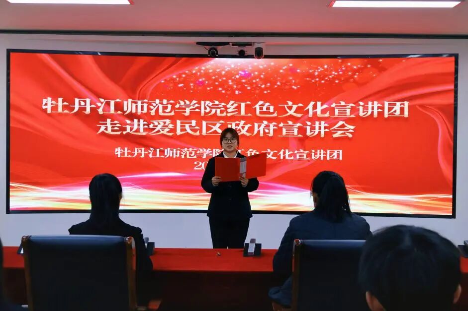 为响应教育部关于开展全国高校“立报国强国大志向,做挺膺担当奋斗者”的宣讲教育的通知精神,10月29日,牡丹江师范学院红色文化宣讲团走进爱民区政府,举办红色宣讲会。校团委副书记赵薇参加本次宣讲,宣讲会由校团委直属团总支组织部部长李莹主持。